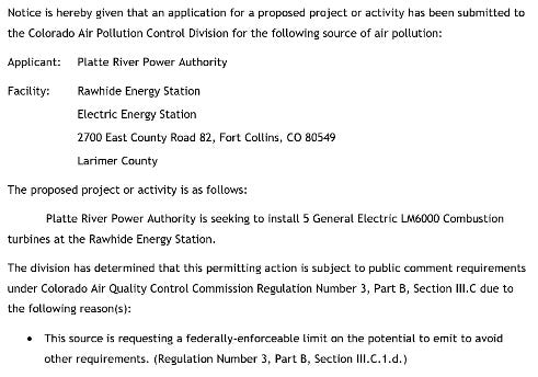 Thank you for your patience while we looked into the public comments received during the permit application for the Platte River Power Authority Rawhide facility turbines. CDPHE’s Air Pollution Control Division received many comments on this construction permit and is still reviewing the comments and responding to constituents. The division aims to complete its review and response to comments in March.